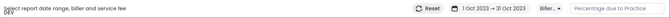 The first step to using the Billings calculator is to use the filters to select the report date range and biller to generate their personalised billings report.