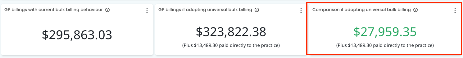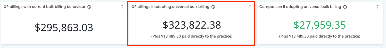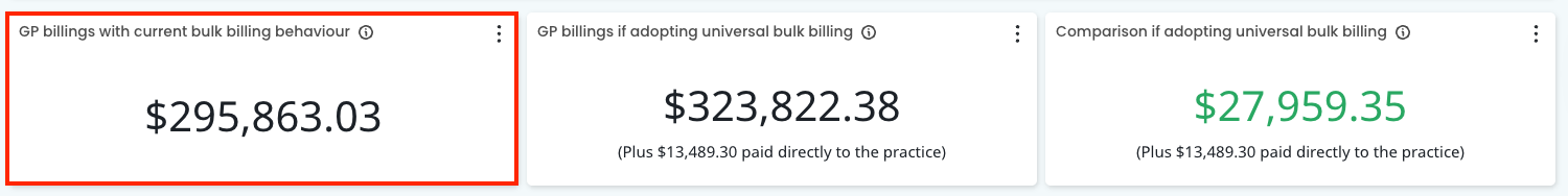 This shows what your total GP billings would be for the same set of services, assuming the same bulk billing rate after 1 November 2025.