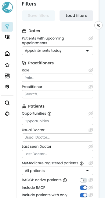 TOP TIP: Set up all your filter combinations, then you can easily and efficiently switch between your saved filters by pressing the 'Load filters' button.