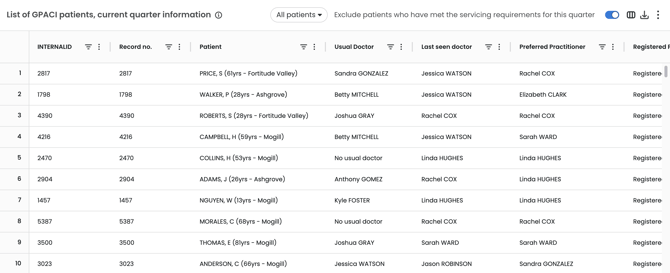 List of GPACI patients, current quarter information