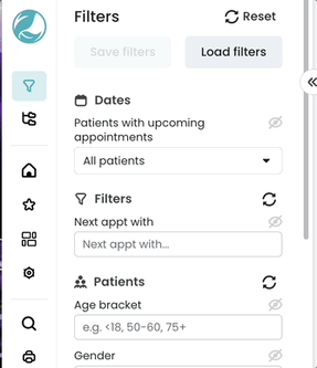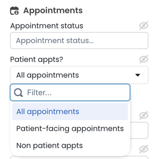Appointments filter – Click on these filters to choose the appointment status, or the patient appointment type. |