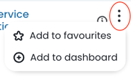 'Kebab' menu These include add the metric to your favourites dashboard or add it to a custom dashboard. When the 'Add to favourites' star icon is highlighted yellow, it indicates that this metric has been added to your favourites dashboard. By clicking this star you can build your own custom favourites dashboard. |