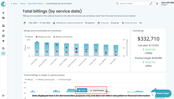 We also have a print preview button in the sidebar, which will allow you to print the entire page of metrics you are on (either directly to your printer or choose the PDF option in your print screen).