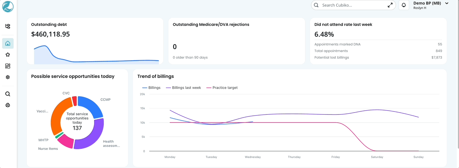 | My Dashboards View and setup your own custom dashboards with metrics that are most important to your practice or team. |