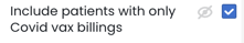 | Include patients with only Covid billings -Select this filter to include patients with only Covid billings (which are otherwise not included) in the metrics where this filter is available. | |