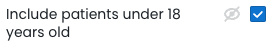 The filter "Include patients under 18 years old" is ticked by default- Untick this filter if you wish to remove patients under 18 years of age from your list. |