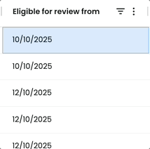 Use the 'Eligible for review from' column to prioritise and proactively engage with patients.