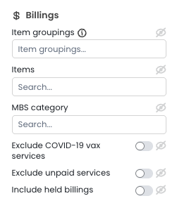 - Billing — filter by billing type such as Bulk Billing, Mixed Billing, Private Billing