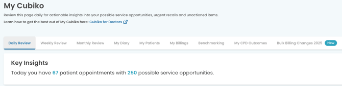 - Come along to our Cubiko for Practitioners and Doctors live webinar, every month! This is where you will find out about new releases and have the opportunity to ask our Customer Success hosts any questions you may have about these metrics.
