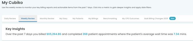 My Cubiko is an individual summary cabinet for the data-empowered Practitioner, providing you insights and analysis into your billings, patients, and diary.