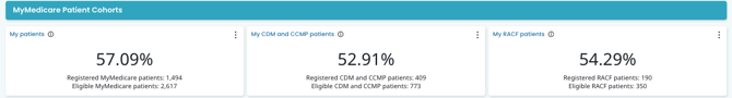 See the proportion of patients who are MyMedicare registered out of the total number of eligible patients. Patient eligibility is based on two face-to-face visits in the past 24 months. * MyMedicare registration status is from your latest CSV upload of MyMedicare Registered patients. To have registered patients in your My Cubiko, ask a team member to import the CSV of registered patients from HPOS to Cubiko, steps on how to import can be found here.