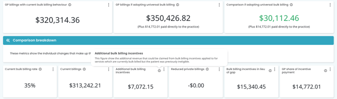 The Australian Government has made changes to bulk billing incentives, which are set to roll out on 1st of November 2025. This dashboard analyses a providers historical services and billings at the Practice in the selected date range, and uses that to calculate what billings might be under these new arrangements.