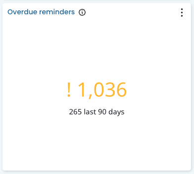 The top number shows the total number of reminders due and the bottom number shows how many reminders are overdue within the last 90 days. This allows you to easily monitor if the number of reminders being performed is increasing or decreasing over time.