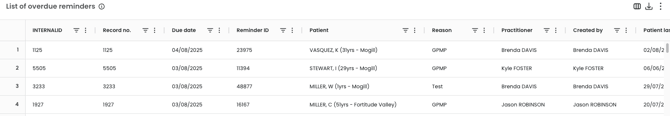 TOP TIP! Use additional filters to narrow down your search parameters by Practitioner, to identify if there are trends that are occurring in your reminders.