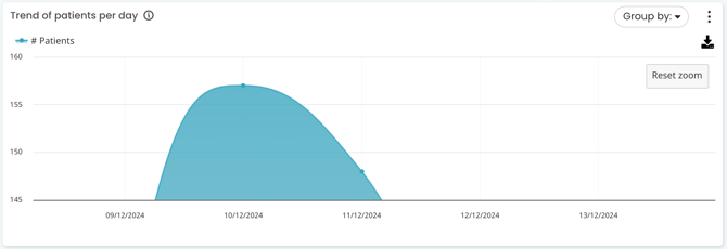 This metric shows the average number of patients seen per day over the selected timeframe. You can also check in on this to see how it changes over time, which can assist in understanding your patient base and identifying any fluctuations.