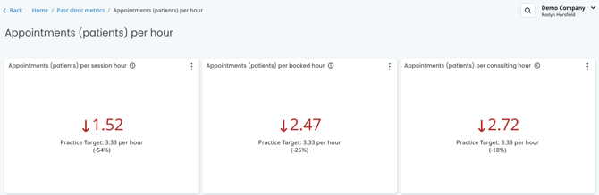 Most Practitioners have a preference for how busy they like to be, and have a set number of patients they see per hour. You can see each Practitioners Appointments per hour and how they sit compared to the target you set from them, once it has been completed in Cubiko Settings.