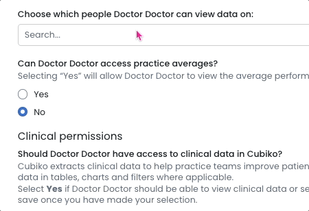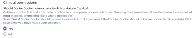 7. Clinical Permissions. Should doctors have access to clinical data in Cubiko?: