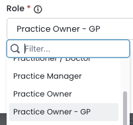 | 2. Under role select "Practitioner/Doctor" |