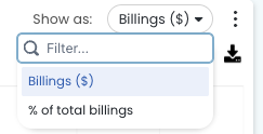 You can view this graph by billings or by % of total billings by using the show as drop-down option on the right-hand side of the metric.