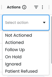 TOP TIP! Use the ‘Actions’ column at the far right of the table to quickly track actions for each row, allowing for team transparency when enquiring with patients/practitioners, and avoids doubling up work by different team members!