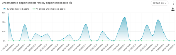 Use this metric to identify patterns and trends, and spot specific days or periods with a higher uncompleted appointment rate. If certain days are consistently higher, it may be helpful to provide focused training or review staffing and rota coverage.