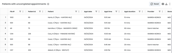 This metric provides a great way to locate any patient appointments that have not progressed within your Practice Management Software system.
