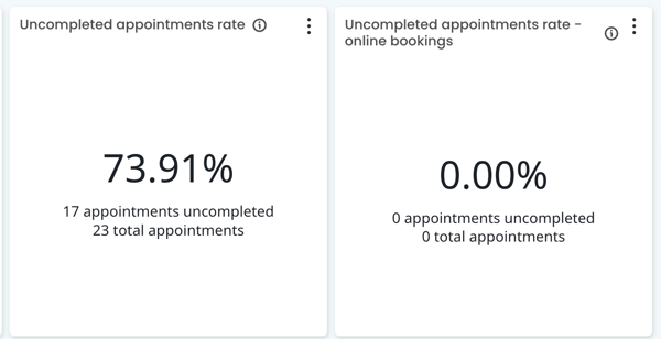 The percentage of uncompleted appointments in the selected period for all appointment booking methods. Appointments are considered incomplete if they are missed and have not been marked as attended or remain current once the date of the scheduled appointment has passed.